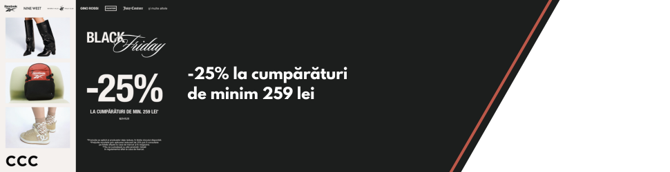 Black Friday a început la Centrul Comercial Felicia! Vei găsi reducerile pe care le-ai așteptat tot anul! Este momentul perfect să-ți reînnoiești garderoba, să-ți completezi rutina de frumusețe sau să te bucuri de accesoriile dorite – toate la prețuri speciale. Iată ce te așteaptă în perioada următoare: CCC: -25% la cumpărături de minim 259 lei…